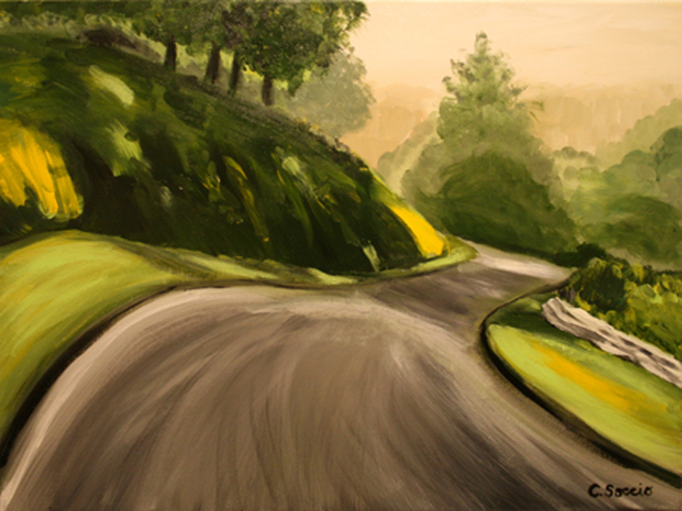 Right now, I’m working on a series of landscapes from Litchfield County, Connecticut. I’ve been doing some graphic design work for Lime Rock Park (a road racing track), and I wanted to do a painting as a gift for my boss. He has a love affair with the track. So, I did one painting (Lime Rock Park #1) and it spun out from there. The track winds through some breathtaking scenery. I have attempted to convey the movement of driving along at very high speeds while taking in all the wonderful beauty and the fabulous light that seems to dance on the landscape. I’m very grateful to be connected to the track and have access to some amazing inspiration.
