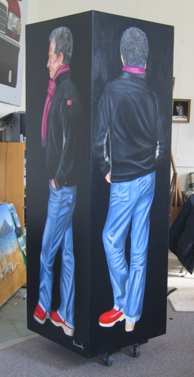 The life size box people are quite frankly a new art form. They have never been done before. Inquiries and commissions are welcome.