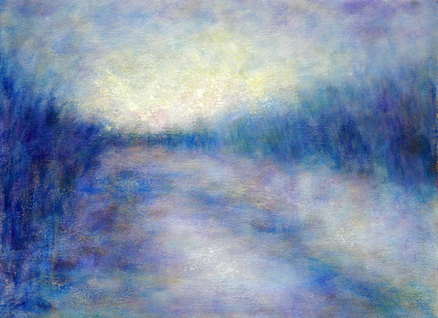 Victoria’s dreamlike landscapes illicit an emotional response to the effects of light in nature. Light is used to draw in the viewer to connect to her work. The images are based on nature, fashioned from memory and imagination, and imply landscapes not necessarily seen, but felt. Victoria is inspired by her travels as it allows her to observe and compare gradients of color, light and atmosphere in different geographic areas. The dramatic effect of light that happens throughout the day sets the mood for the painting and creates a meditative atmosphere. Time of day holds emotional and spiritual possibilities. Nature becomes the source of her artistic energy.