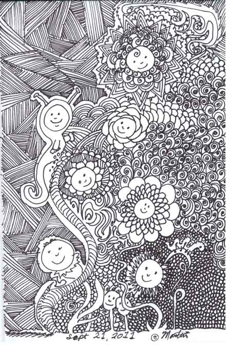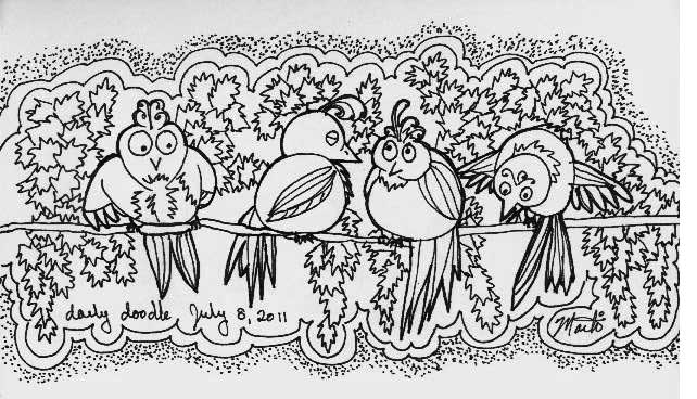 A couple of years ago, I read an article about doing a daily doodle. Since one of my aims was to draw something, anything, every day, I decided to take the challenge myself. I began the “Daily Doodle Challenge” and posted the daily images on my blog. Some of the things that I doodled later went on to become parts of final art. Doodling is a great way to experiment plus wake up the muse. Or in my case, actually focus the muse.