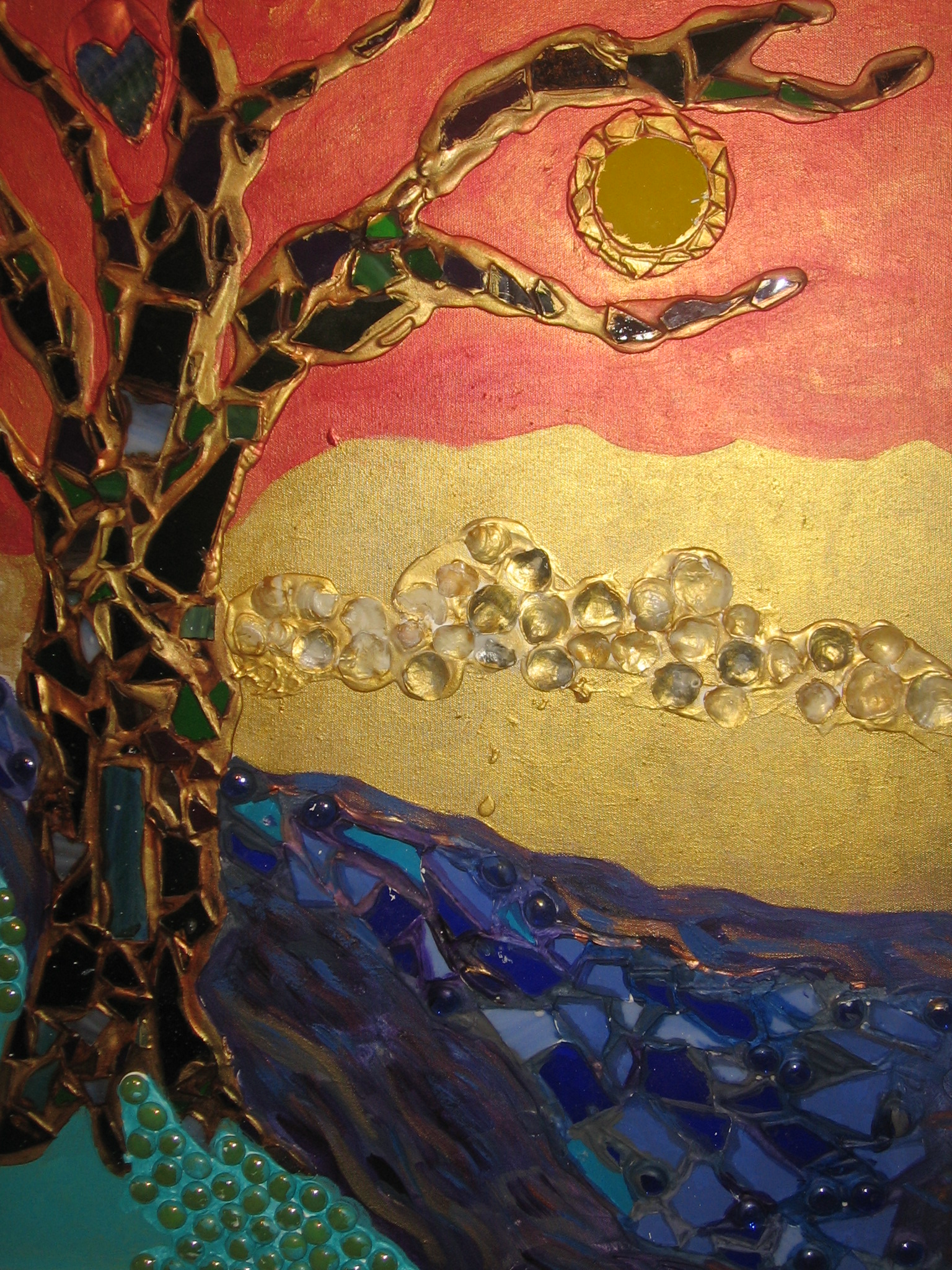 I love to paint, everyday, it allows me to process and connect my heart, mind and soul and wrap them all up harmoniously in a way that helps make them understood and validated. I want my art to connect with the viewer in the same way and help unravel within them some of the forgotten memories of the past. I communicate this through the use of mixed media, oil and acrylic paints, glass, textured gesso, found objects from the beach. I am passionate about texture, almost wanting the viewer to imagine him/herself sitting in one of my paintings to understand its vision and message.