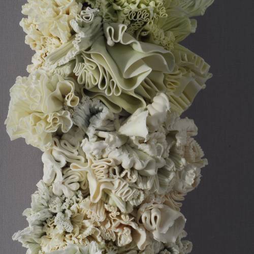 Over time, my work evolved into two distinct but related bodies of work – the three dimensional ribbon works and a body of abstract landscapes. The ribbon pieces began to take shape when I started working sculpturally in about 2004. I became increasingly interested in the dimensionality of sculpture and textures; giving texture a more pronounced depth.