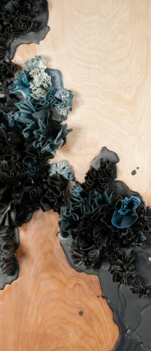 Already bridging that dividing line between painting and sculpture, I believe these works could elicit a much greater impression on the viewer by taking them off the wall and increasing their scale; the corner of a room installed with work expanding out along the floor and reaching up the two side walls. A piece transformed into a coral reef stretching across a room or sitting on a sand dune, with grasses waving in the air . These freestanding installation works will be the focus of my time as an Summer Affiliate Artist in 2013 at the McColl Center in Charlotte.