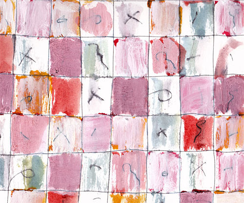 Per usual, right now I’m working in a number of different arenas. I’m developing an ongoing series of abstract works on paper that take the form of grids, loosely interpreted. For these drawings in particular I give a good deal over to the pen so that the result is a conversation rather than a controlled outcome. Working with water-soluble ink plays a part as well; as I add color or simply wash the drawing with a wet brush, the conversation deepens and changes.