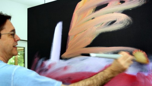 In both music and art, I am very interested in improvisation. I paint spontaneously, without a plan, letting the painting take me where it will go.