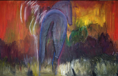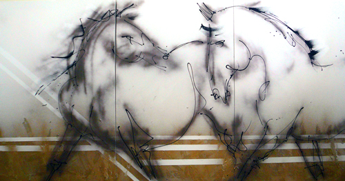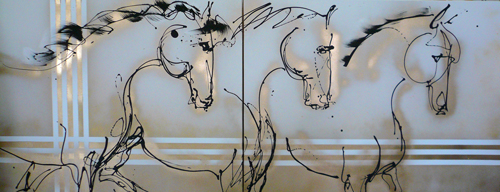 My art incorporates the purely gestural, minimalist and abstract. I find that less not only is more, but that it inherently says more. “It isn’t the amount of paint in your art; it’s the amount of art in your paint.” I work on the floor, place large canvases about me, and paint athletically between them. I feel this amplifies the feeling of aliveness in the works. Such vitality is an identifying feature of horses, and one to which we all respond.