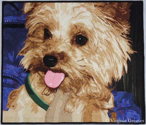 I studied color in my own way, learning how the eye can be influenced by value and how color wheels could be used to create more visually exciting pieces. I have spent several years on a series of portraits, studying the faces of people and even sometimes their pets. My medium is textiles, and the added challenge of creating realism using non-traditional methods is my daily enticement.