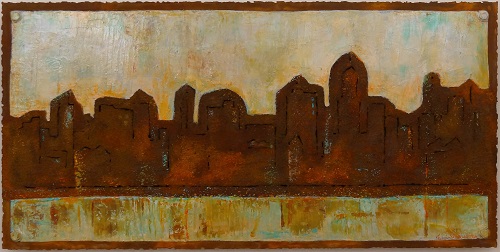 My painting process is simply layer upon layer of acrylics until I feel I have achieved the look and texture I am looking for. Bringing together all of these different and diverse elements, I like to think I am making each of my paintings a true one-of-a-kind, three dimensional work of art.