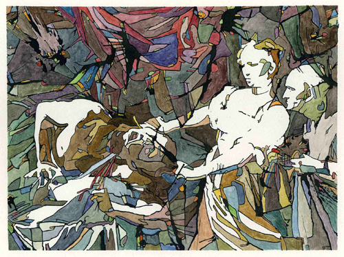 Creating an image can can be approach by either the path of chaos or the path of form. The works approached from the path of form are images that are disintegrating, exploding, decaying. If the painting is approached from the path of chaos it is formed through the distilling of that chaos into an abstract suggestive form.